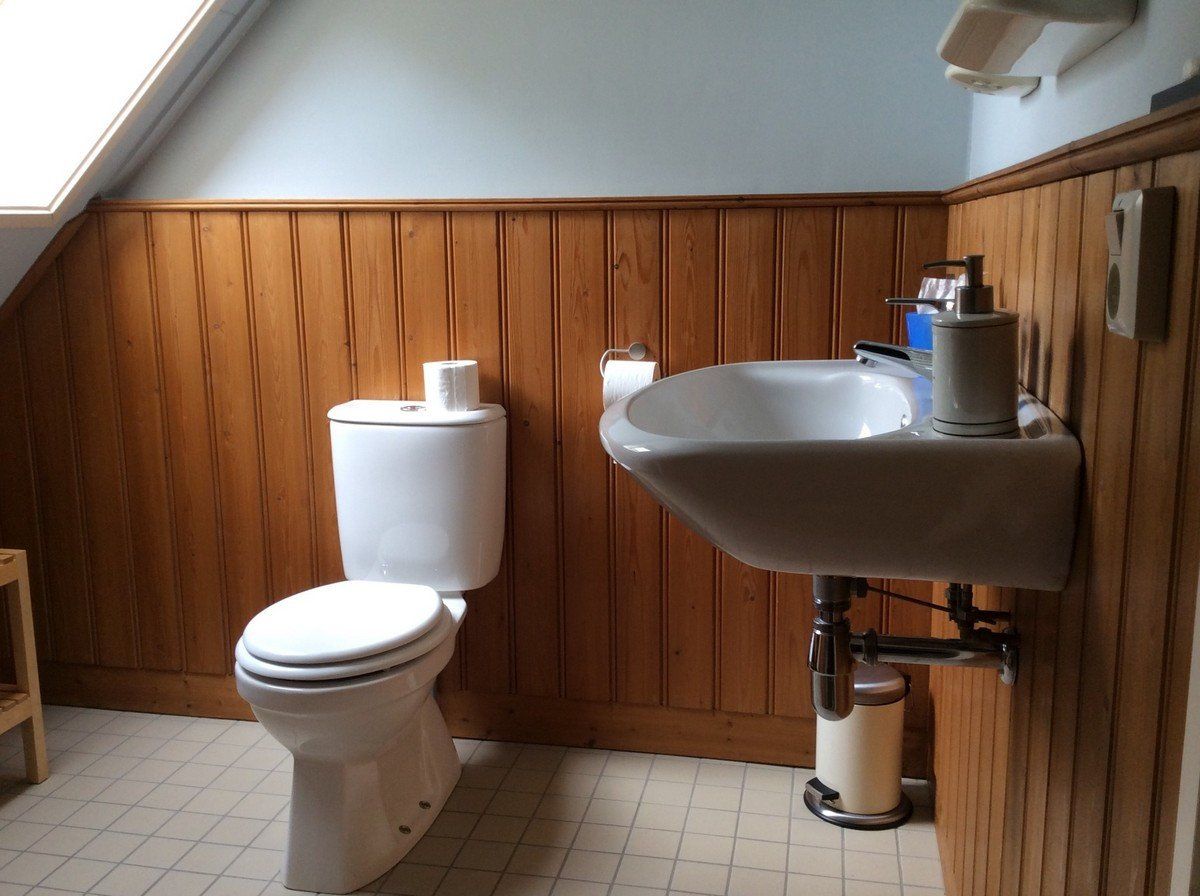 Er is een ruime slaapkamer op de benedenverdieping met twee éénpersoonsbedden met boxspringmatrassen. De badkamer heeft een toilet, een wastafel en een douche. Vanuit het vakantiehuis, op het terras of in de tuin kun je genieten van het mooie uitzicht, de vijver en de rust.